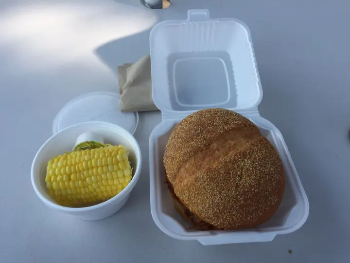 Lunch: The BBQ Pit (pork sandwich, corn on the cob)