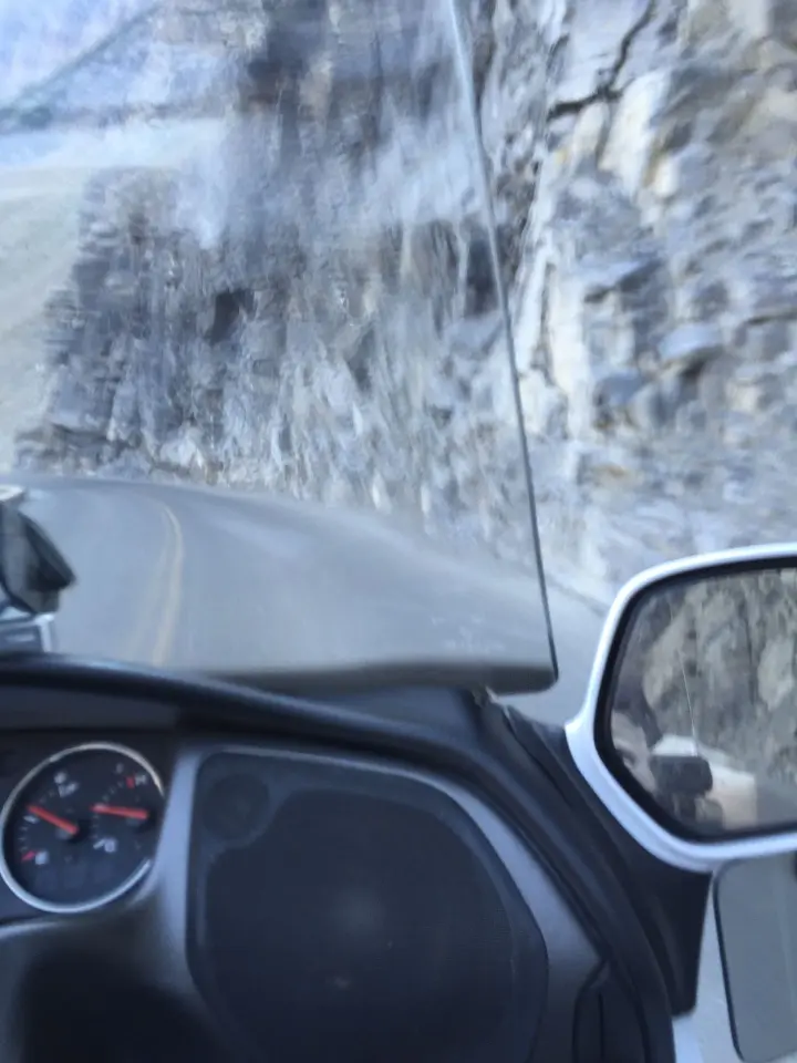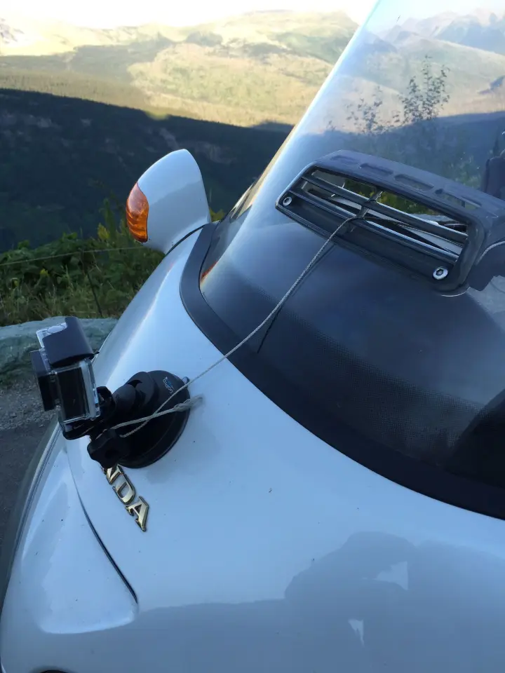 I bring that up so I can mention my tether. The first day of the trip, I had the GoPro mounted on the fairing right out front, which was really making me nervous (I’ll remind you that it is borrowed), and I have little to no faith in suction cups.